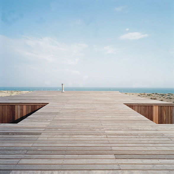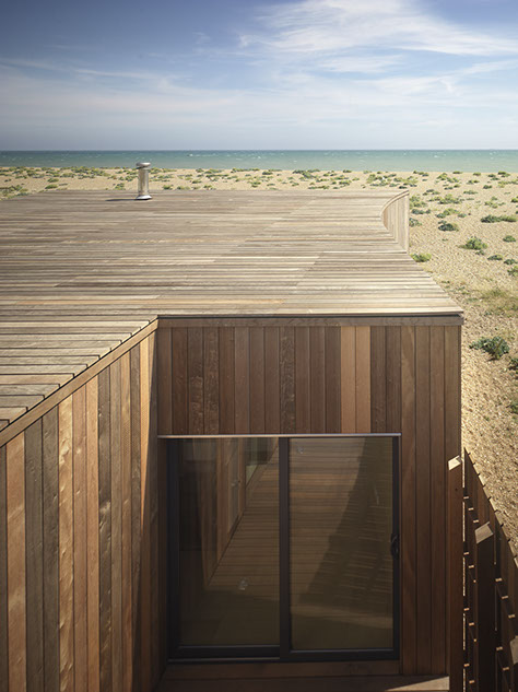 The sloping roof deck acts as an observation platform with extraordinary 360 degree views of the beach and the sea. The plan incorporates two courtyards to provide shelter from the constant wind.