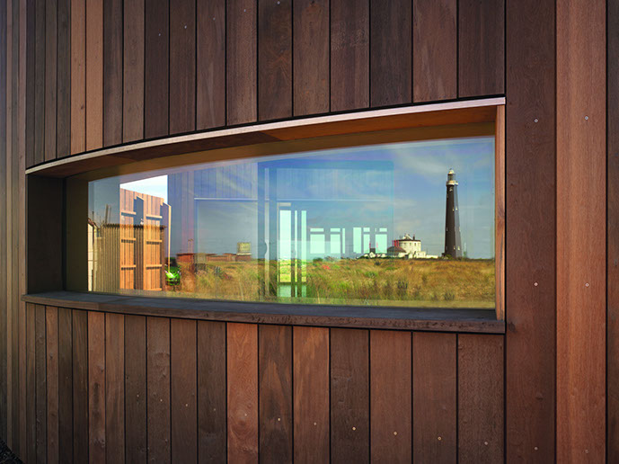 A fully-glazed South elevation gives views out over the Channel and a series of smaller slot windows on the other elevations give focused views of the adjacent lighthouse, coastguard station and nuclear power station.