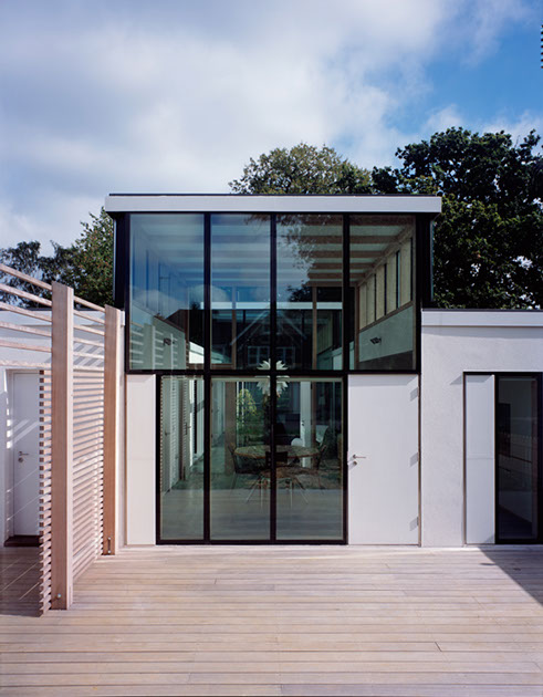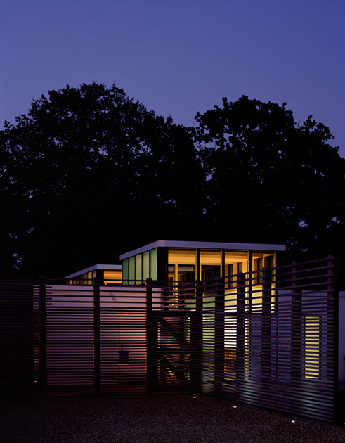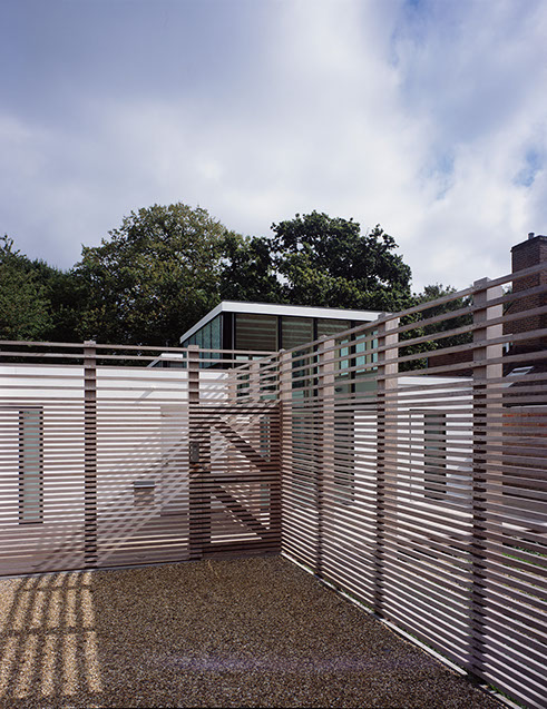 The clients, a professional couple with two young daughters, wanted to build a new house on a typically suburban road in St Albans. A legal covenant meant that the new house had to be single-storey and have a flat roof, unusual constraints in such a traditional environment.