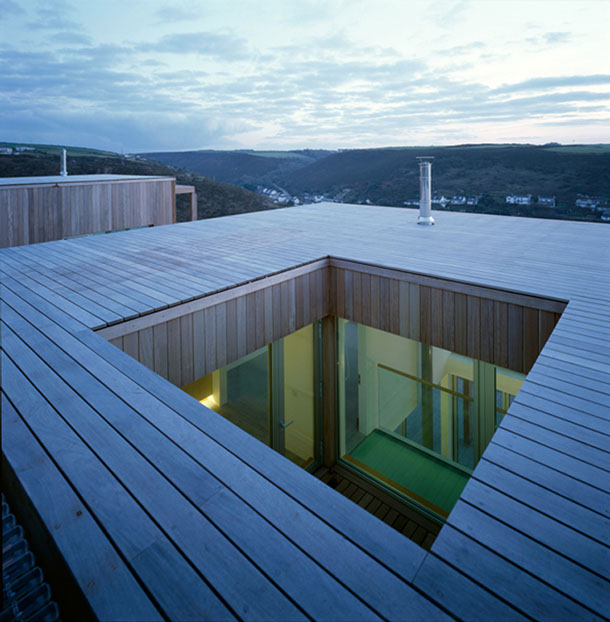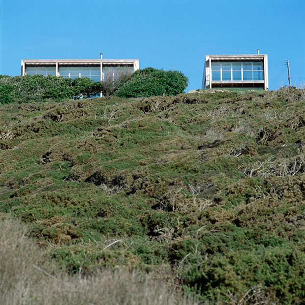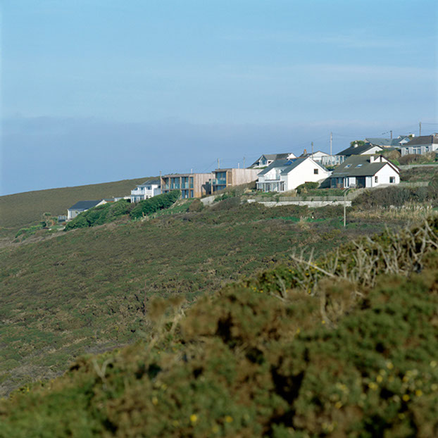 The site for these two new buildings is a steeply sloping hillside above Porthtowan beach on the north coast of Cornwall. As such it has dramatic views out over the Atlantic and south down the coast to St Ives.