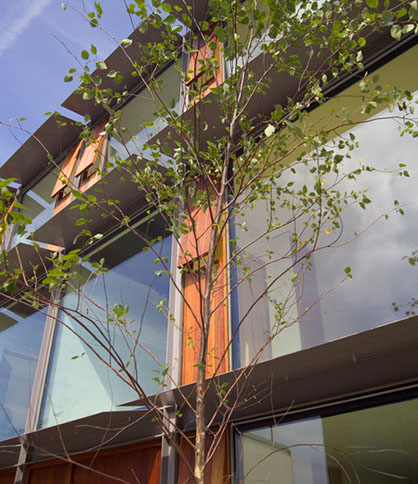 The buildings consist of clearly expressed steel frames with a combination of fixed, glazed infill panels and hardwood ventilation panels and external doors.