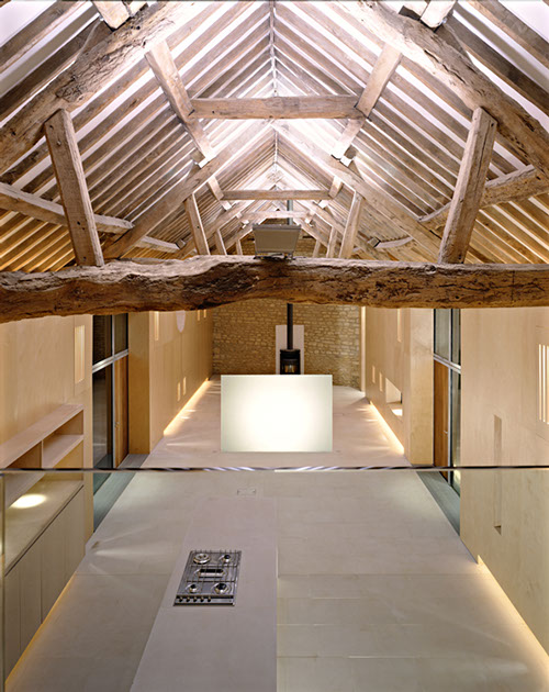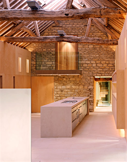 One of the main design objectives was to preserve the open interiors of the original barns with the minimum number of internal subdivisions. The main space in the larger barn has been retained as one double-height space and contains the main living areas including an open plan kitchen.