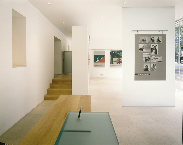 The entire area along the street frontage has been opened out with full height frameless glazing to create an enlarged reception area and a new gallery space for exhibitions of sports related photography, art and architecture.