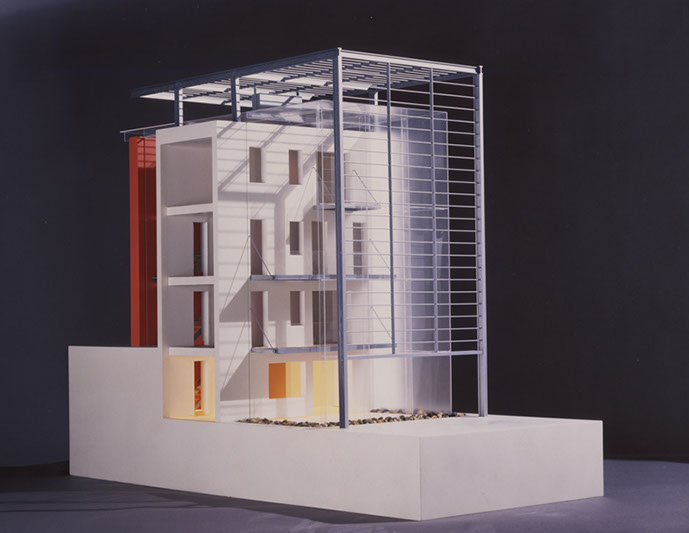 This project was developed as part of the Architecture Foundation’s ‘New British Architecture’ exhibition, held in London, Berlin and Bordeaux. SCA used this opportunity to look at ways of revitalising the tradition of the urban terraced house, and proposed a new archetype which, while retaining the ‘loose-fit’ characteristics of earlier historical models, made energy conservation an integral part of its design and allowed for changing patterns of family life.