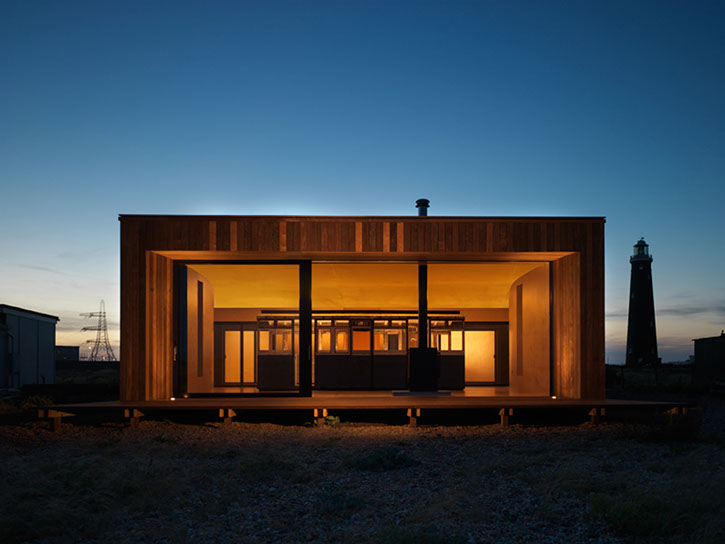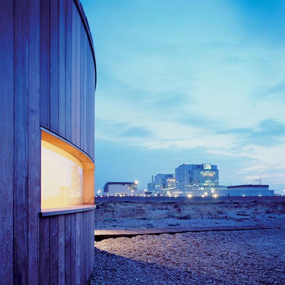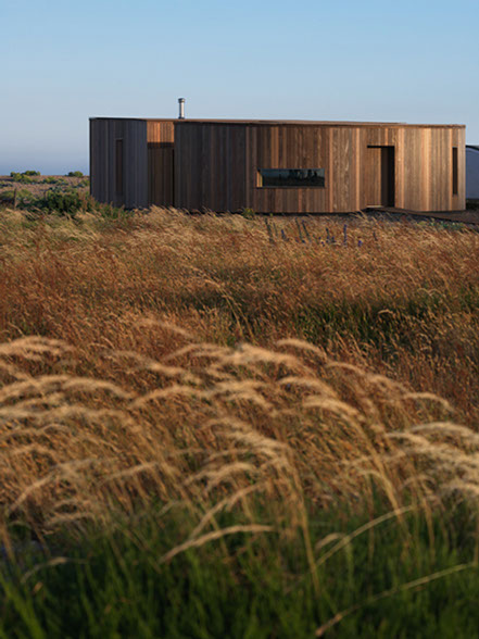 A fully-glazed South elevation gives views out over the Channel and a series of smaller slot windows on the other elevations give focused views of the adjacent lighthouse, coastguard station and nuclear power station.