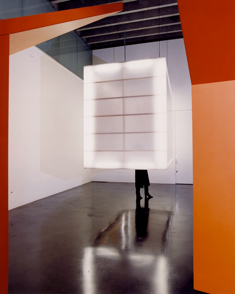 This large, suspended light box was developed for the Crafts Council 'Making Buildings' touring exhibition, which opened at the new Walsall Art Gallery before travelling to London and other venues in England and Wales.