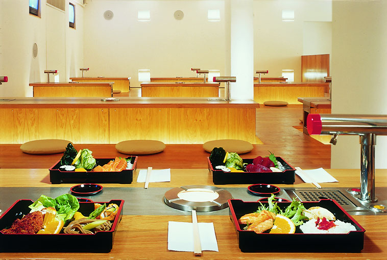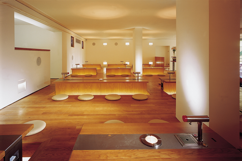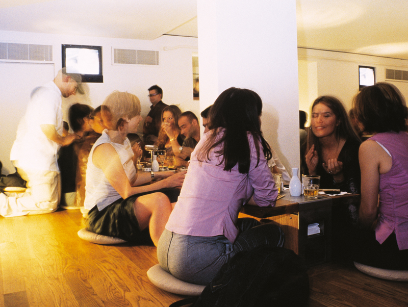 During the day Yo! is light and airy, an island of calm with green tea, massage and muted music all helping to relieve tensions of working in central London. At night the pace picks up with a reduction in the lighting levels, creating a more intimate atmosphere. As the night goes on the music is slowly increased to club levels and the relative formality of the space is lost in a dynamic mass of party goers.