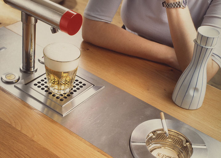 The low ceilings led to the decision to keep people as low as possible and this in turn led to an area of raised floor incorporating innovatory serviced tables which allow customers to pour their own beer at their table. Customers sit in the raised floor, a western and more comfortable take on the Japanese custom of sitting on the floor. The step in structural floor along the Poland Street frontage generated the section of the Low Bar, a two tier bar that allows staff to serve standing customers over the heads of the seated customers.